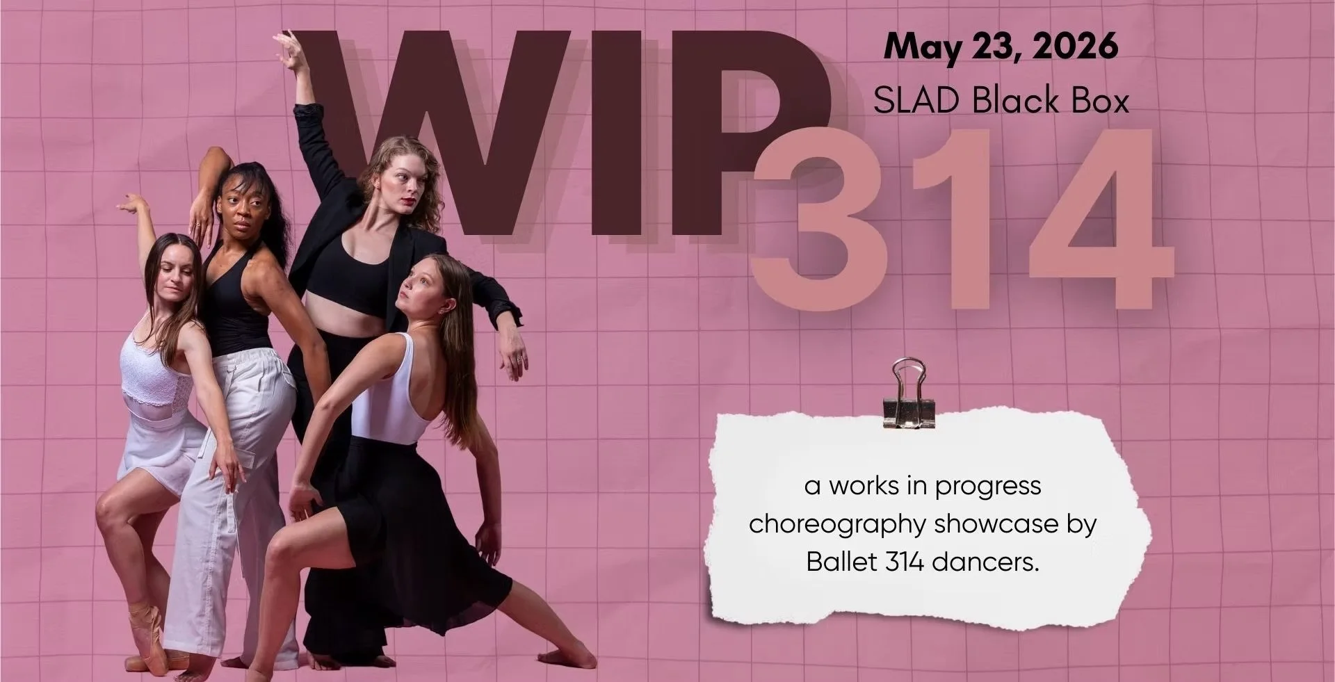 WIP 314 is a choreographic incubator designed to support Ballet 314 dancers in developing original work. Through structured rehearsal time, mentorship from artistic and production staff, and creative space, the program emphasizes experimentation and professional growth. The project concludes with a public “Works-In-Progress" showing.